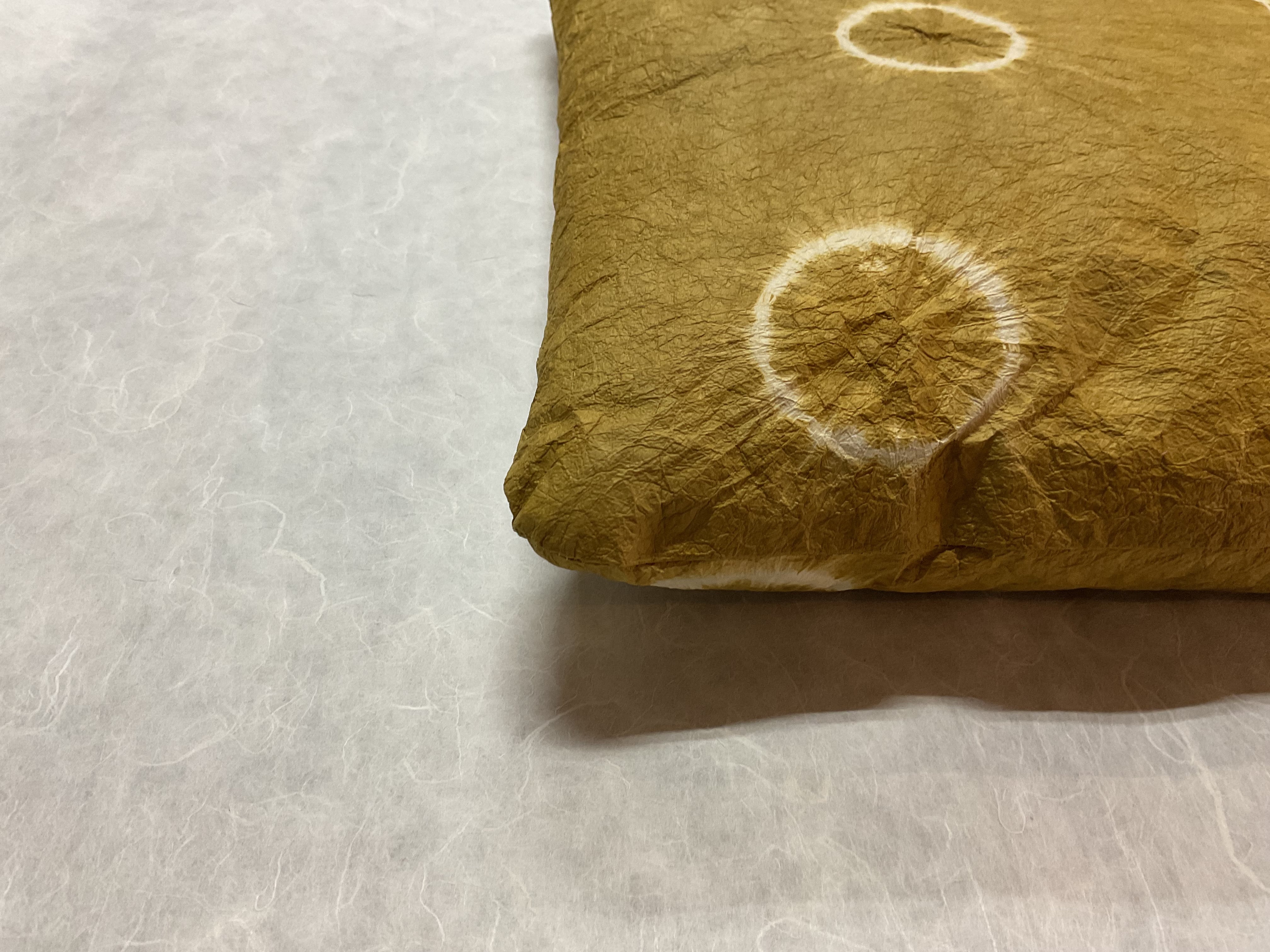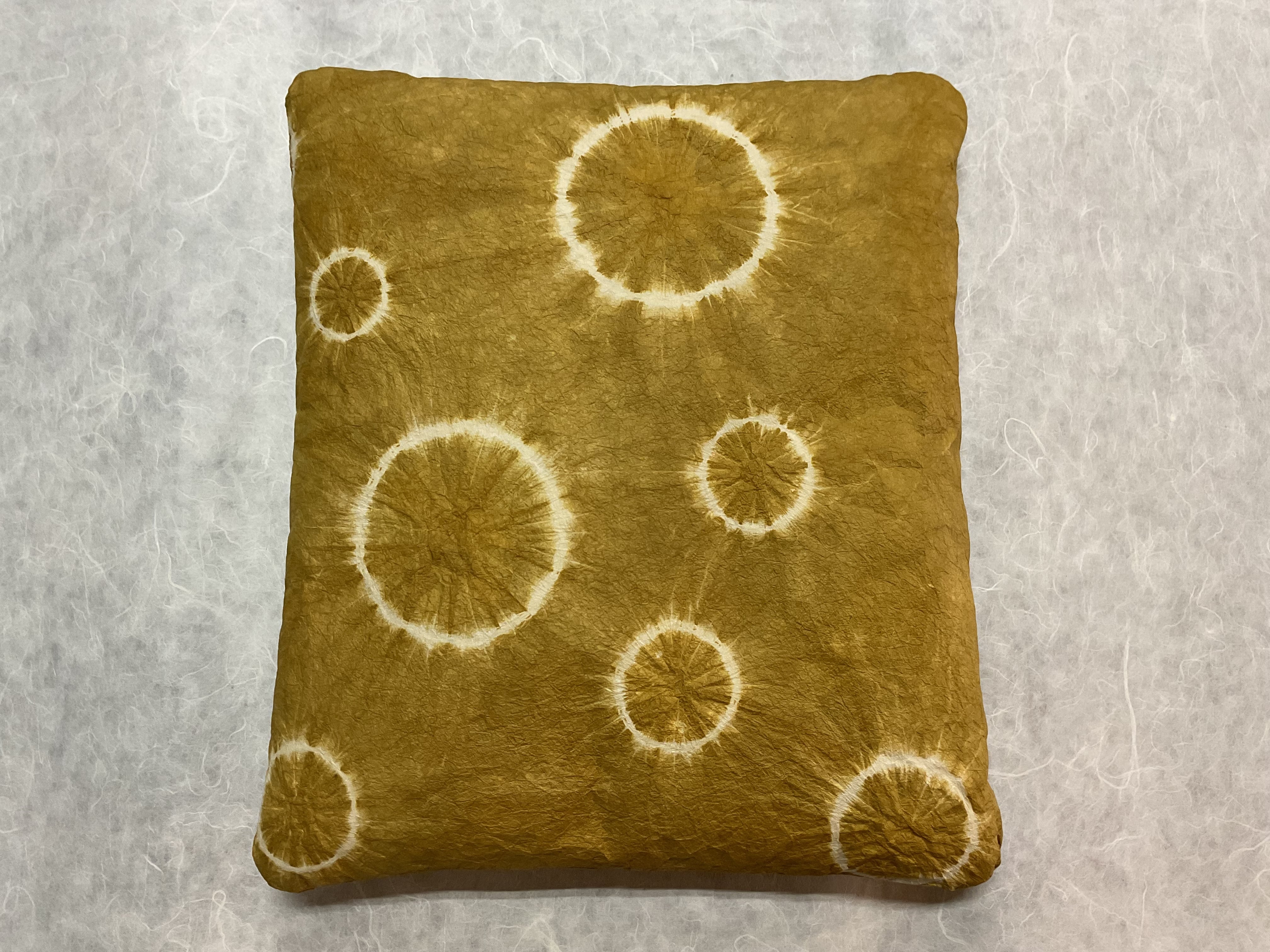 厚口の和紙に絞り染めを施し、ミシンで縫い合わせて作りました。